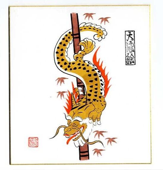 04 大津絵 手描き色紙 『 竹に龍 』